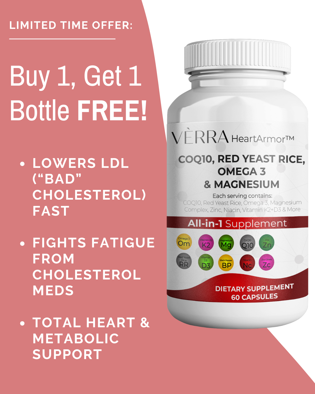 Ours is a 3-in-1 formula: Red Yeast Rice + CoQ10 + Omega-3s, plus Magnesium and key vitamins.